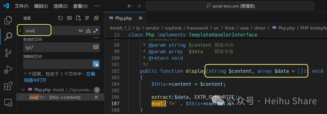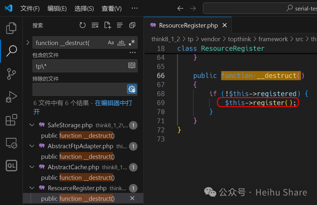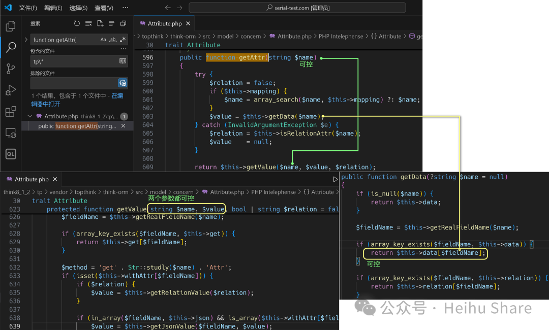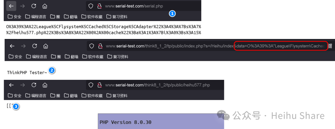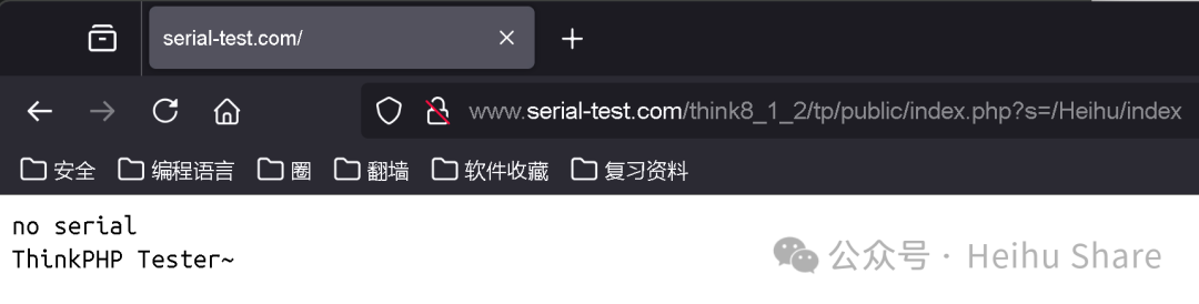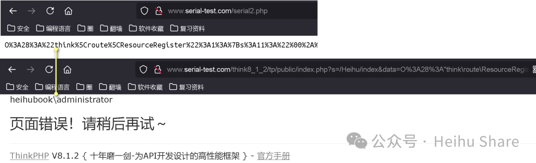 定义一个反序列化入口, 进行测试, 访问tp/public/index.php?s=/Heihu/index&data=链路