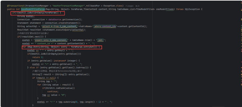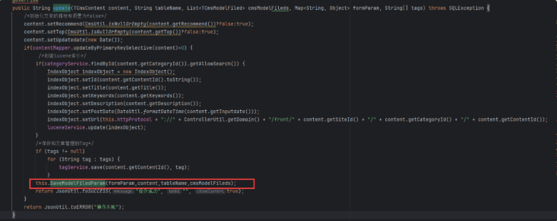 接着跟进com.zhiliao.module.web.cms.service.impl.ContentServiceImpl#SaveModelFiledParam方法: