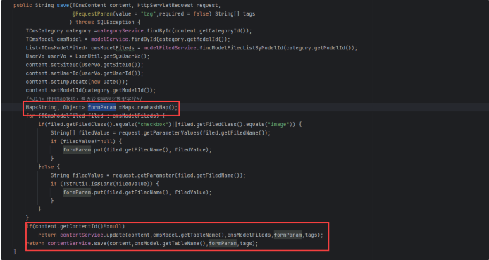 漏洞发生位置在com.zhiliao.module.web.cms.ContentController#save: