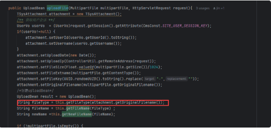 最开始fileType又是通过this.getFileType(attachment.getOriginalFilename());获得的: