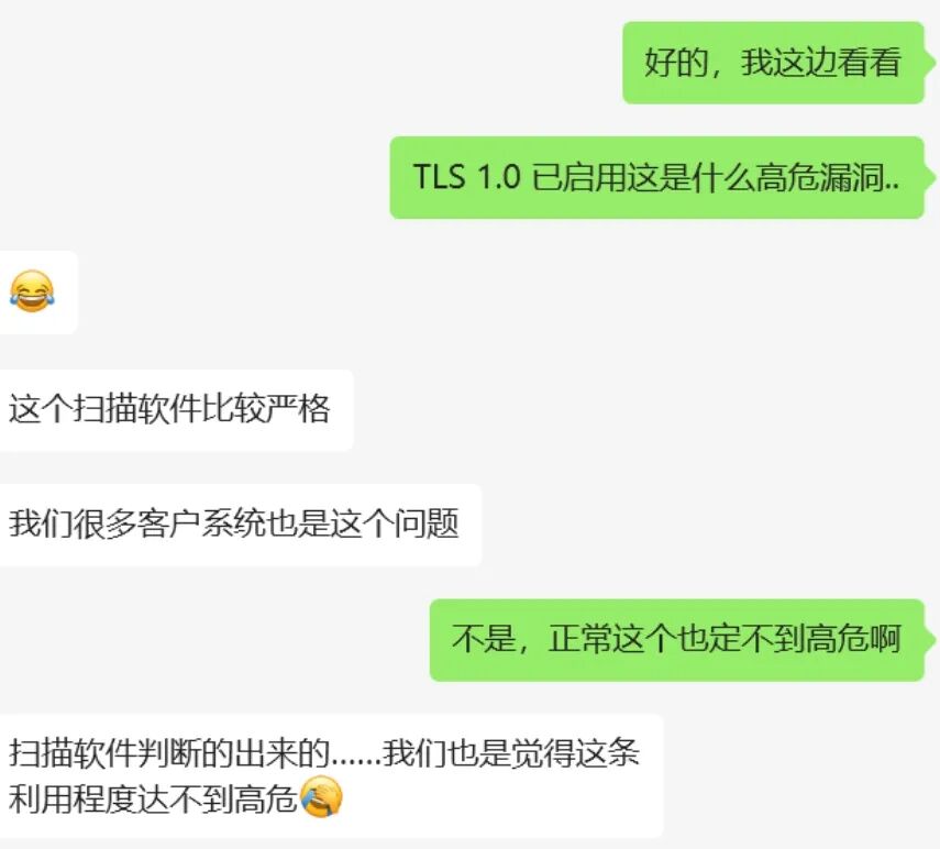 这个群里有个老哥好像发过,某地网安TLS版本低也通报了,真实事件。