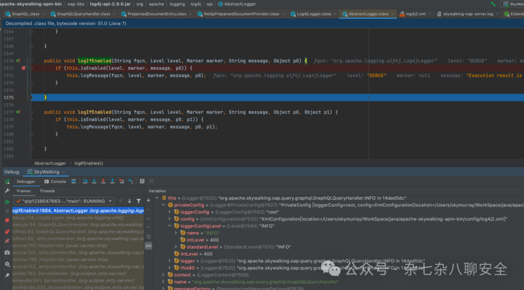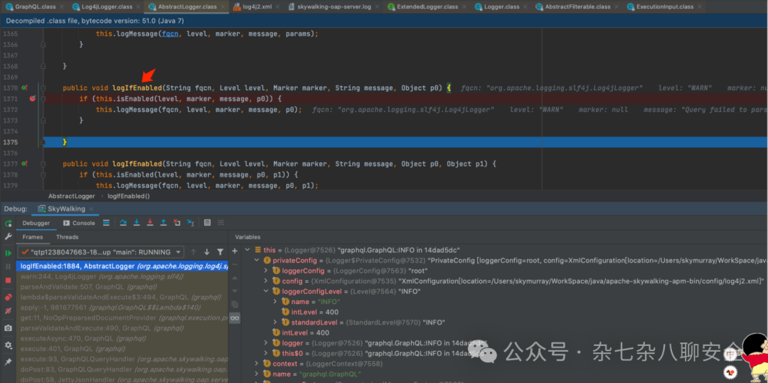 在org.apache.logging.log4j.spi.AbstractLogger#logIfEnabled方法中需要判断日志等级,只有上述那个点是log.warn
