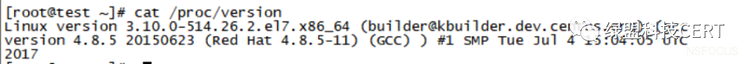 Linux系统用户可以通过查看版本来判断当前系统是否在受影响范围内,查看操作系统版本信息命令如下: