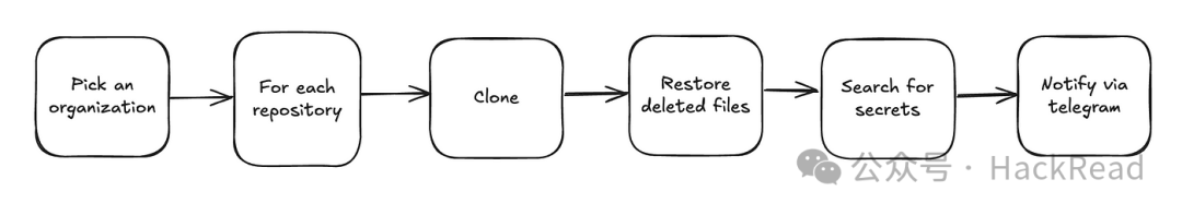 我认为,将大量GitHub仓库克隆到本地,并提取/恢复已删除的文件,证明是一种有效的扫描和发现泄露密钥的策略。
