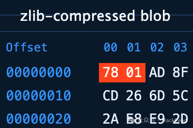 如何识别 pack 文件和 blob 文件:50 41 43 4B — PACK | 78 01 — zlib 压缩的 blob 开始标志(图片使用