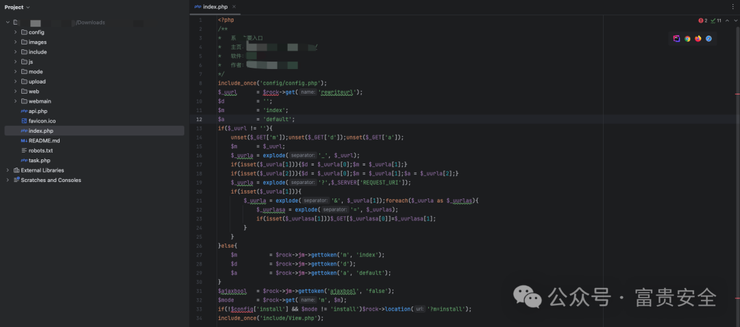 传入的m参数来定位某个php文件,d参数表示webmain文件夹的某个目录,a参数表示执行的函数方法,当传入的ajaxbool为true时,a参数调用的Ajax方法,ajaxbool默认为false,a参数调用的Action方法。