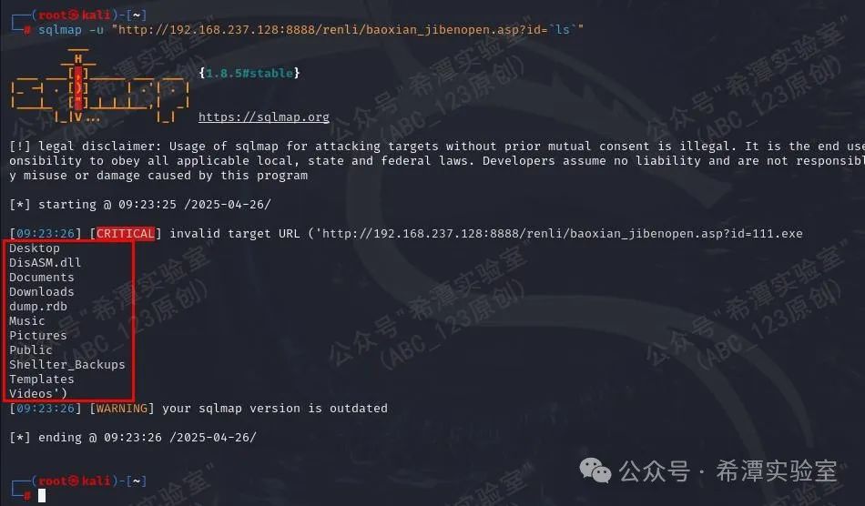 sqlmap在Linux下shell解析反引号导致命令执行。 -