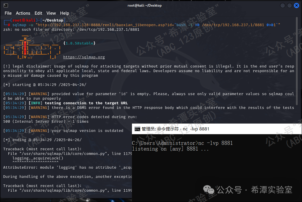 sqlmap进行注入测试时,如果未对参数进行严格校验,便可能在不知情的情况下触发反弹shell操作,从而被蓝队人员成功反制。
