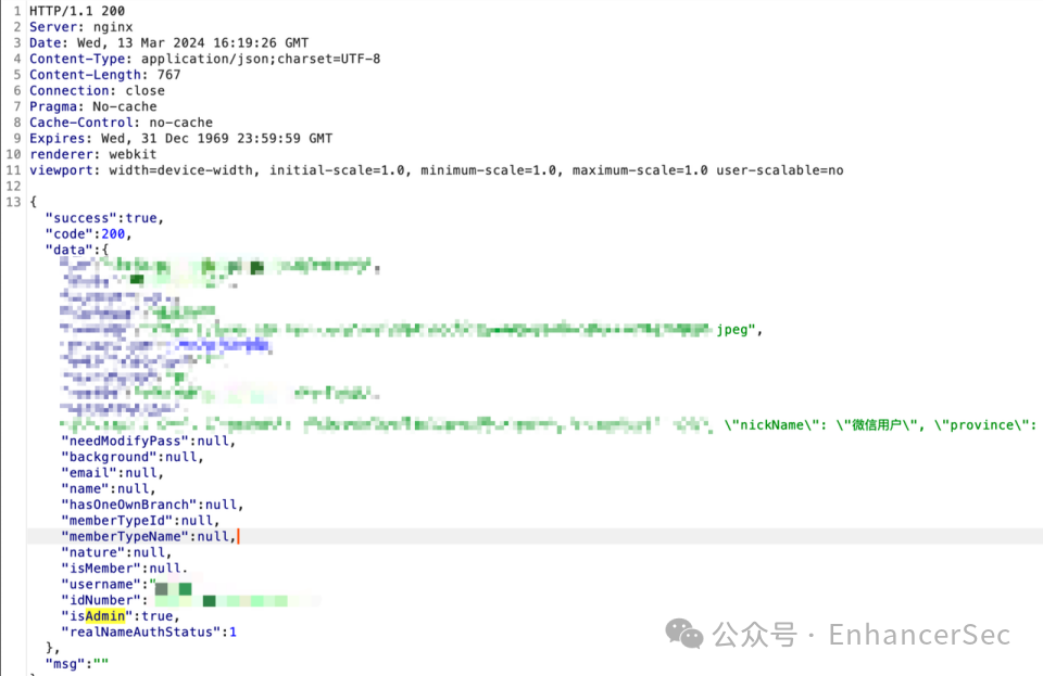 接着抓到了下一个请求包,再将返回包中的isAdmin修改为true