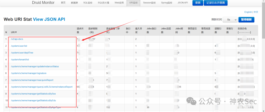 可以看到在URL监控里面泄露了很多的敏感信息接口