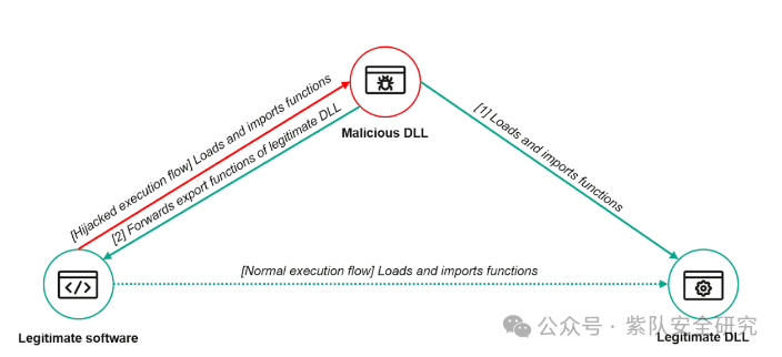 对TCESB的DLL库进行静态分析后发现,其导出的所有函数均从系统文件version.dll(版本检查和文件安装库)中导入同名函数。这表明攻击者采用了DLL代理技术(劫持执行流,T1574)来运行恶意代码。通过这种技术,恶意DLL导出合法DLL的所有函数,但并不实际实现这些函数,而是将对这些函数的调用重定向到原始DLL。这样一来,加载恶意库的应用程序将继续正常工作,而恶意代码则在该应用程序的后台运行。