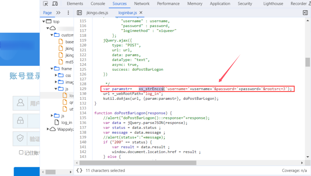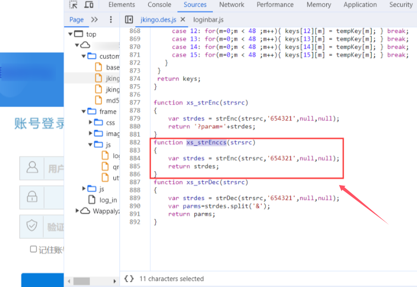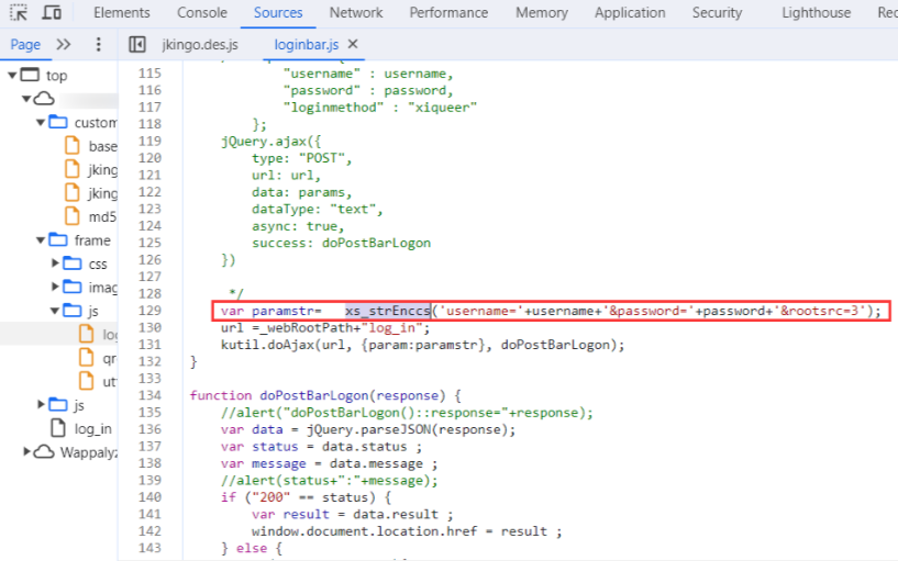 在loginbar.js中,写明了参数加密的方法是xs_strEnccs