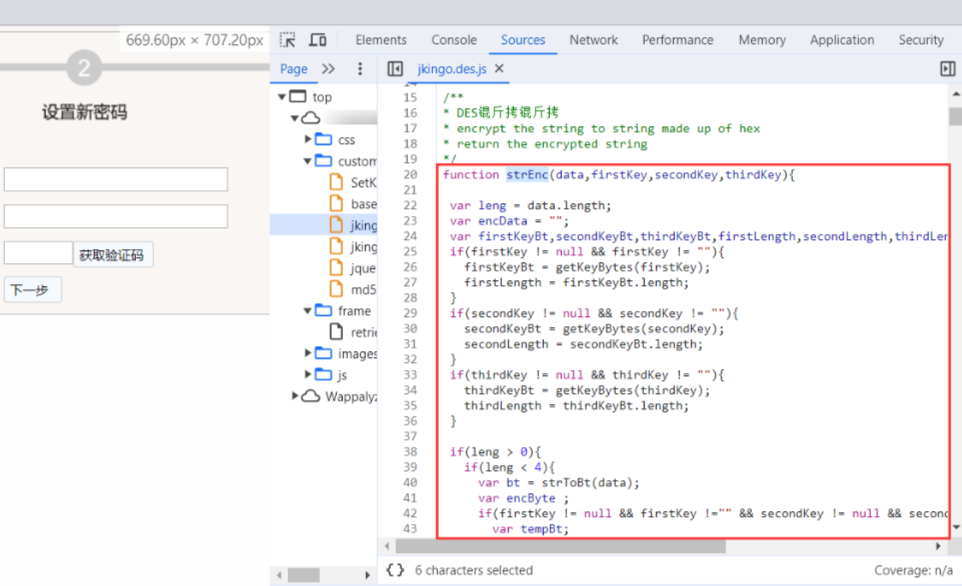 在该找回密码页面中,可以找到strEnc方法,这个方法正式对密文进行加密的子方法