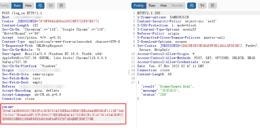所以登录时抓包,再替换数据包里面的param值,放包以后就能正常登录