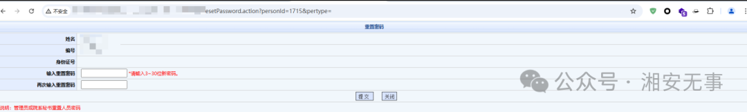 只要修改personId的后面的数字就可以重置对应的用户密码,这里我就修改test用户personId是1715,直接填写后提交就好,修改为1234567xaws