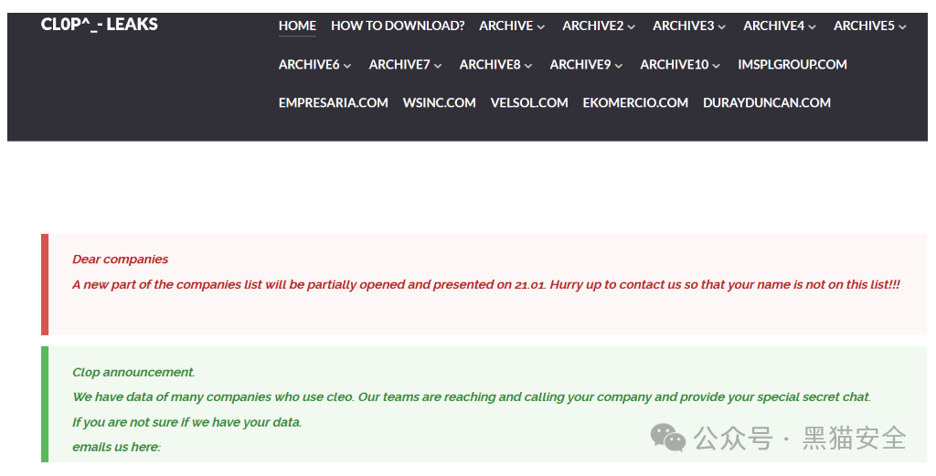 ■ 2025年1月:Clop声称已入侵59家企业并威胁公布数据