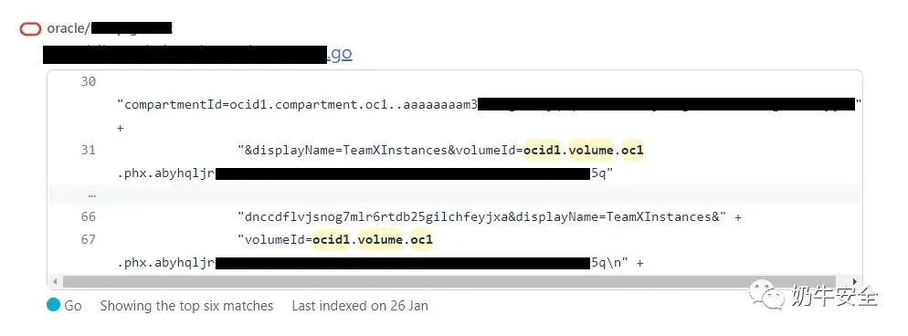 还可以找到发布在 GitHub 上的卷的 OCID,表明这些 ID 确实没有被开发人员视为秘密。具有环境读取权限的低权限用户和第三方供应商可以非常轻松地获取 OCID。