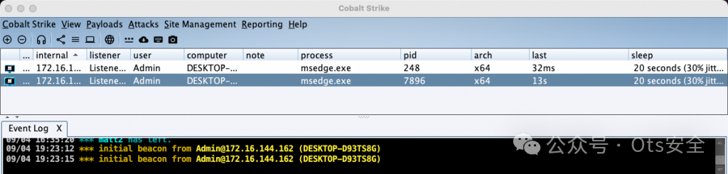 图 20 – 我们的 DLL 使用 Cobalt Strike 进行调用