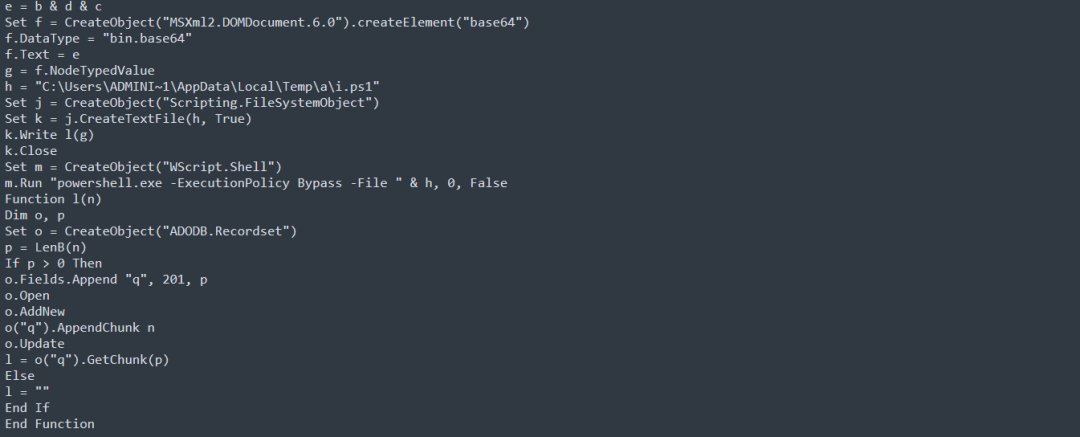4.VBS恶意脚本代码,调用执行PowerShell代码,如下所示: