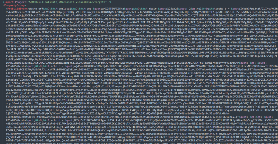 1.项目下载之后,恶意代码隐蔽在vbproj文程文件当中,如下所示: