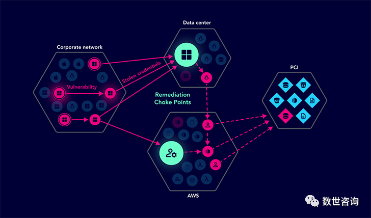 网络安全初创企业XM Cyber的研究人员认为,只有在攻击图上综合各种风险暴露,可视化所有可能的攻击路径,才能了解关键资产所面临风险的关系和上下文。而通过了解上下文,我们就可以准确排序问题的优先级,重点关注阻塞点上出现的需修复风险暴露上。这么做可以实施富有成效的修复,经济高效地降低风险。