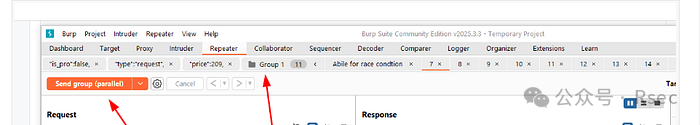 使用 Burp Suite 的并行发送组功能一次发送所有请求。