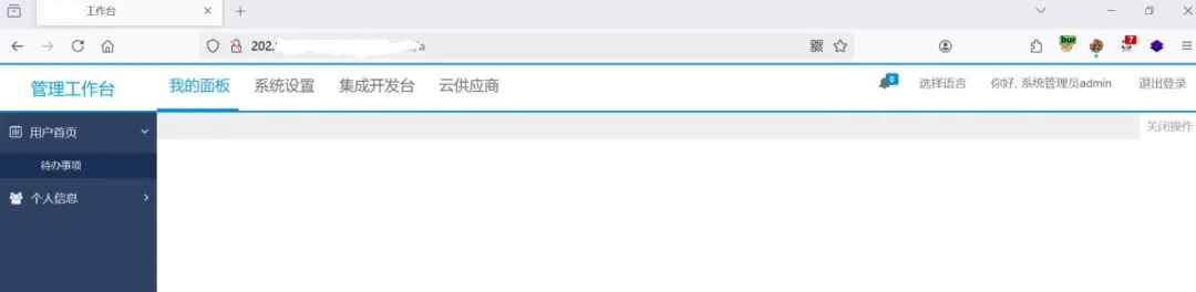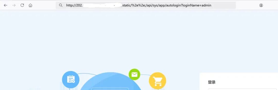 通过熊猫头插件提取接口,并结合js分析,跑遍了提取到的路径也没有结果。尝试弱口令登录,但是由于连用户名提示都没有,也以失败告终。最后根据页面title关键字搜索找到该平台的权限绕过nday成功进入后台。