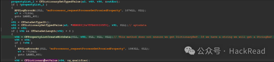 举例来说,CVE-2025-24129 就是一个由于 plist 参数处理不当而引发的类型混淆(Type Confusion)漏洞。由于该漏洞已于 1 月公开,因此我们可以分享一些技术细节。至于其他漏洞(包括本次披露的新漏洞),我们将在确保大多数用户已更新至最新版本、不再受影响之后再行公开技术细节。