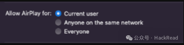 :将“允许AirPlay的设备”更改为“当前用户”。虽然这不能防止