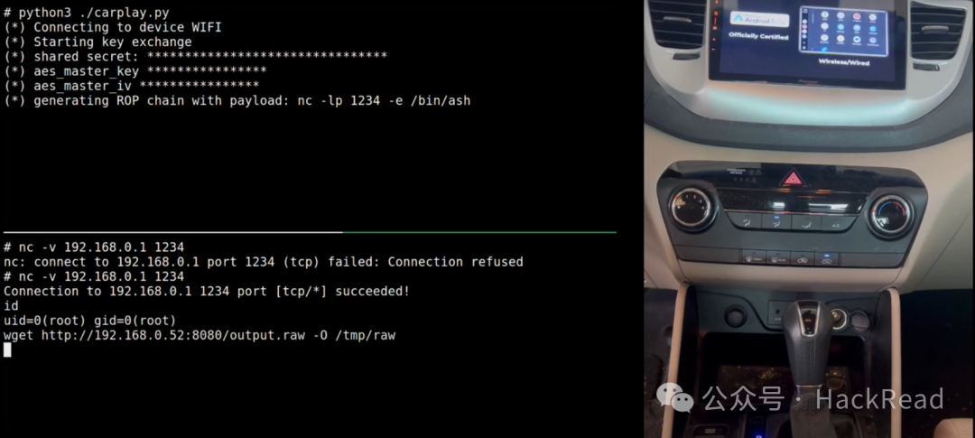 :某些 CarPlay 设备厂商会通过 IAP2 协议利用蓝牙传输 WiFi 凭据,配对过程中需输入 PIN 码。若攻击者 1)靠近 CarPlay 单元,2)能看到并输入 AirPlay 设备上显示的 PIN 码,则可实施 RCE 攻击。在某些情况下,这是一次单点击 RCE,因为可能需要受害者点击确认。 -