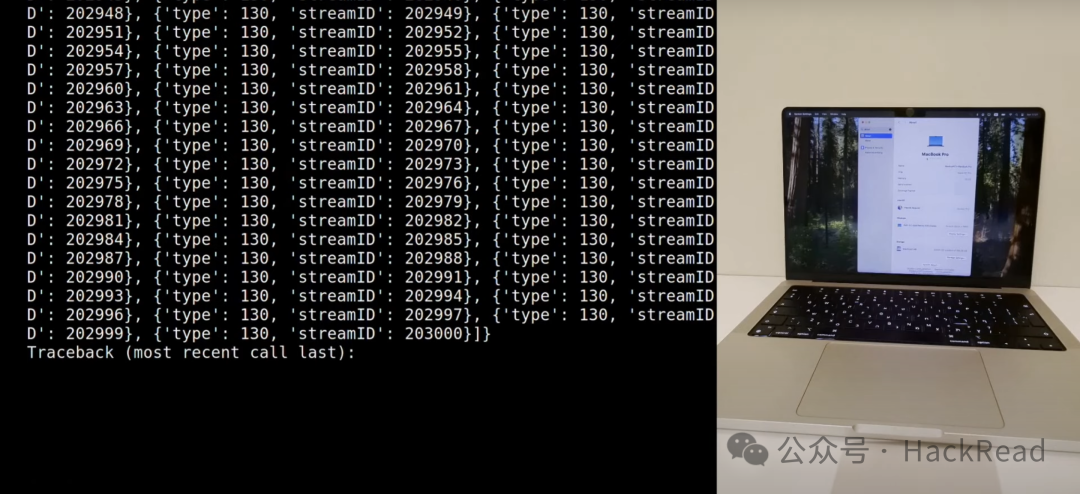 持续发送大量流会增加 WindowServer 服务的内存占用和响应时间。几秒钟后,看门狗(watchdog)会终止 WindowServer 服务,导致用户被强制注销。