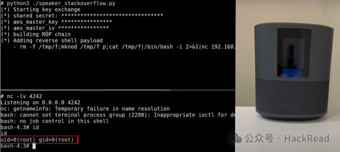 成功攻击的结果可能包括一些“轻松”的操作,例如在设备上显示图像或播放音乐,也可能包括更为严重的行为,例如利用设备的麦克风监听附近的对话——比如在一个高规格会议室中窃听。