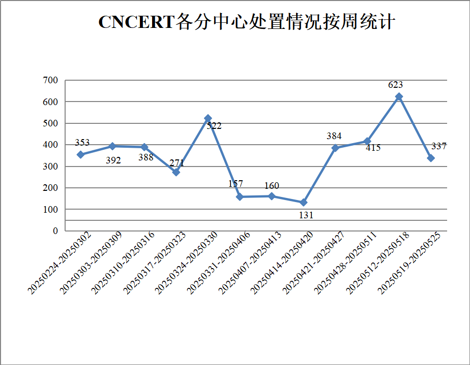 4起,向基础电信企业通报漏洞事件7起,协调CNCERT各分中心验证和处置涉及地方重要部门漏洞事件337起,协调教育行业应急组织验证和处置高校科研院所系统漏洞事件63起,向国家上级信息安全协调机构上报涉及部委门户、子站或直属单位信息系统漏洞事件14起