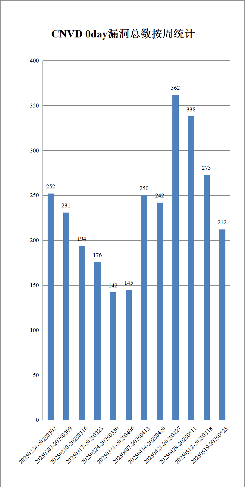 国家信息安全漏洞共享平台(以下简称CNVD)本周共收集、整理信息安全漏洞315个,其中高危漏洞169个、中危漏洞126个、低危漏洞20个。漏洞平均分值为6.69。本周收录的漏洞中,涉及0day漏洞212个(占67%),其中互联网上出现“CicadasCMS注入漏洞(CNVD-2025-10058)、MRCMS跨站脚本漏洞(CNVD-2025-10059)”等零日代码攻击漏洞。本周CNVD接到的涉及党政机关和企事业单位的漏洞总数9722个,与上周(11049个)环比减少12%。