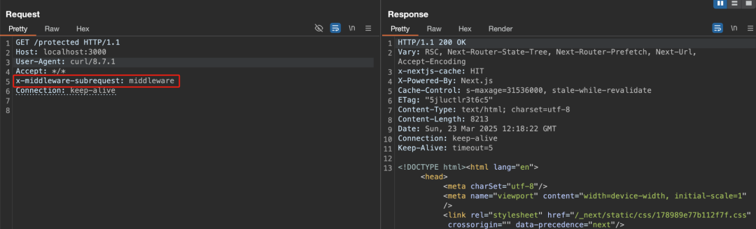 为了防止中间件重新触发自身的无限循环,Next.js 使用一个名为“x-middleware-subrequest”的标头来指示是否应应用中间件功能。