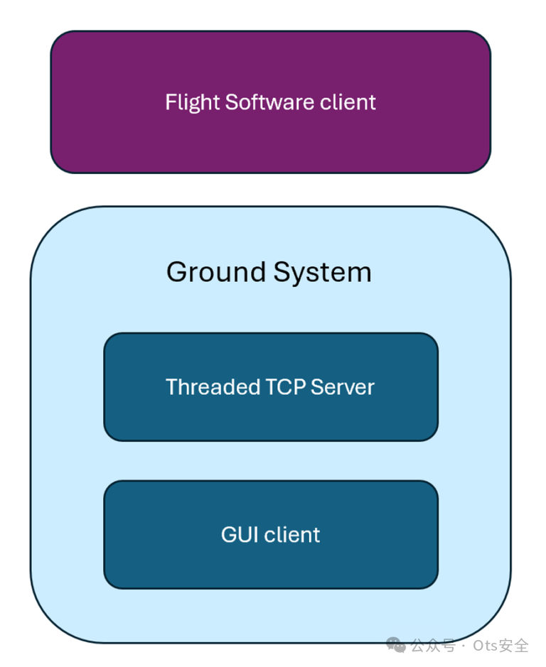 命令调度服务也是 fprime 框架内的一个组件,它从外部接收命令并将其传递到内部组件。此时,传输到指挥调度服务的外部命令是从地面系统传输的,如下图所示。地面系统负责与配备飞行软件的外部系统(例如卫星)进行通信和控制。