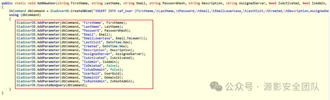 继续跟进 CreateUserEx 方法,最终跟进到 GladUserDB 类。