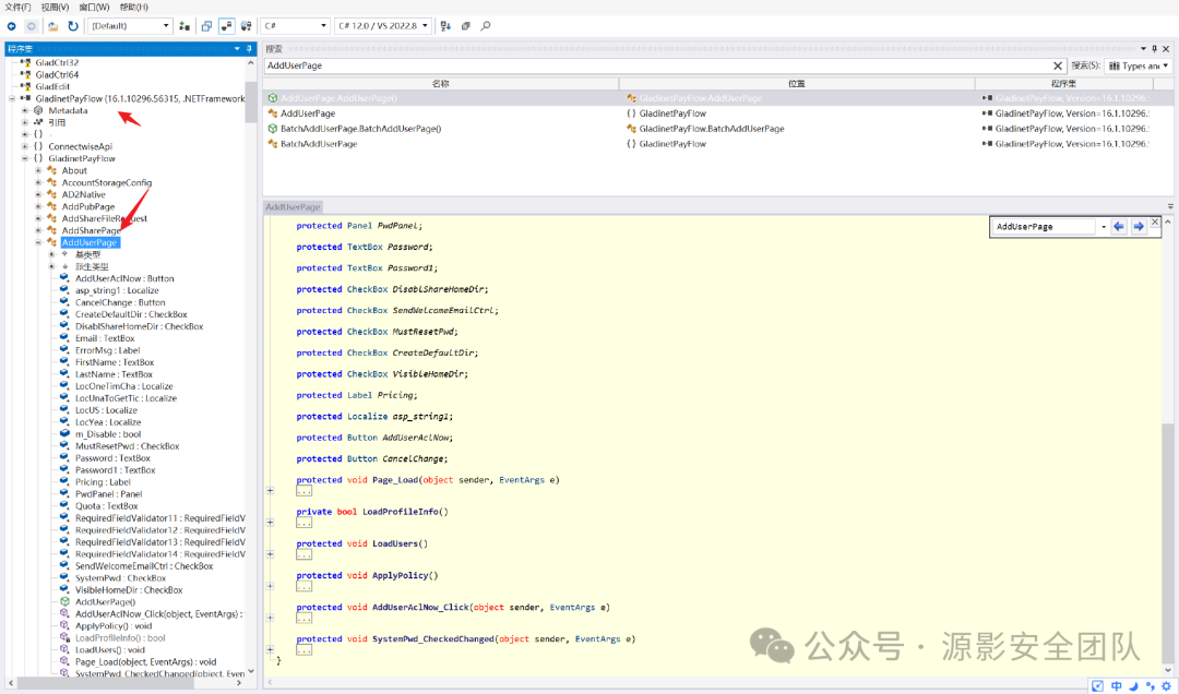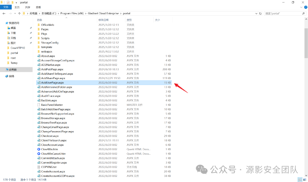 现在来寻找数据库操作的 dll ,这里看到了一个 AddUserPage.aspx: