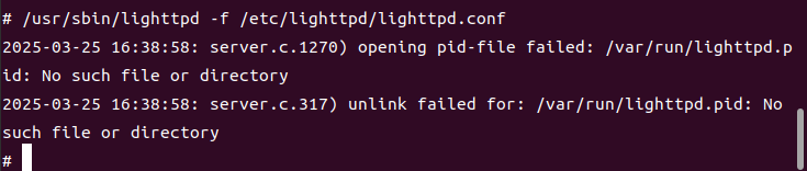 mkdir -p /var/run/touch lighttpd.pid//去run文件夹下创建chmod 777 lighttpd.pid
