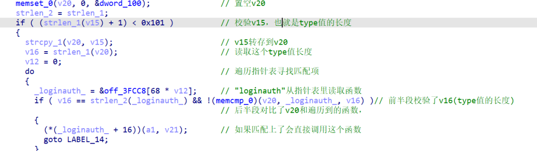 在下面遍历指针表,寻找匹配的函数,如果找到了就会调用这个函数,json数据也会再交给那个函数处理