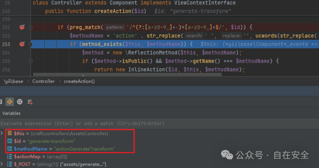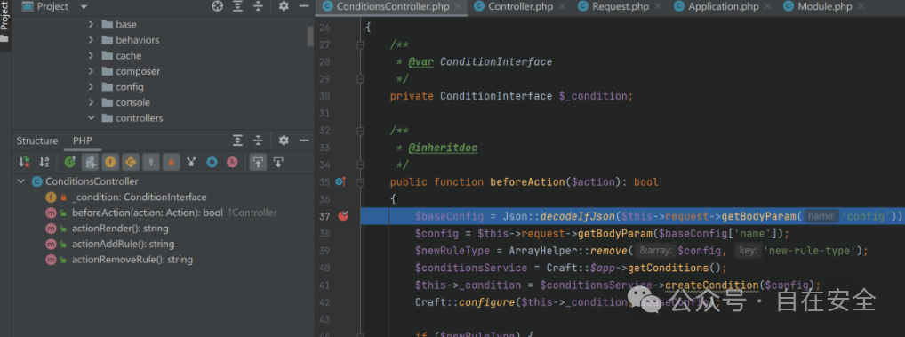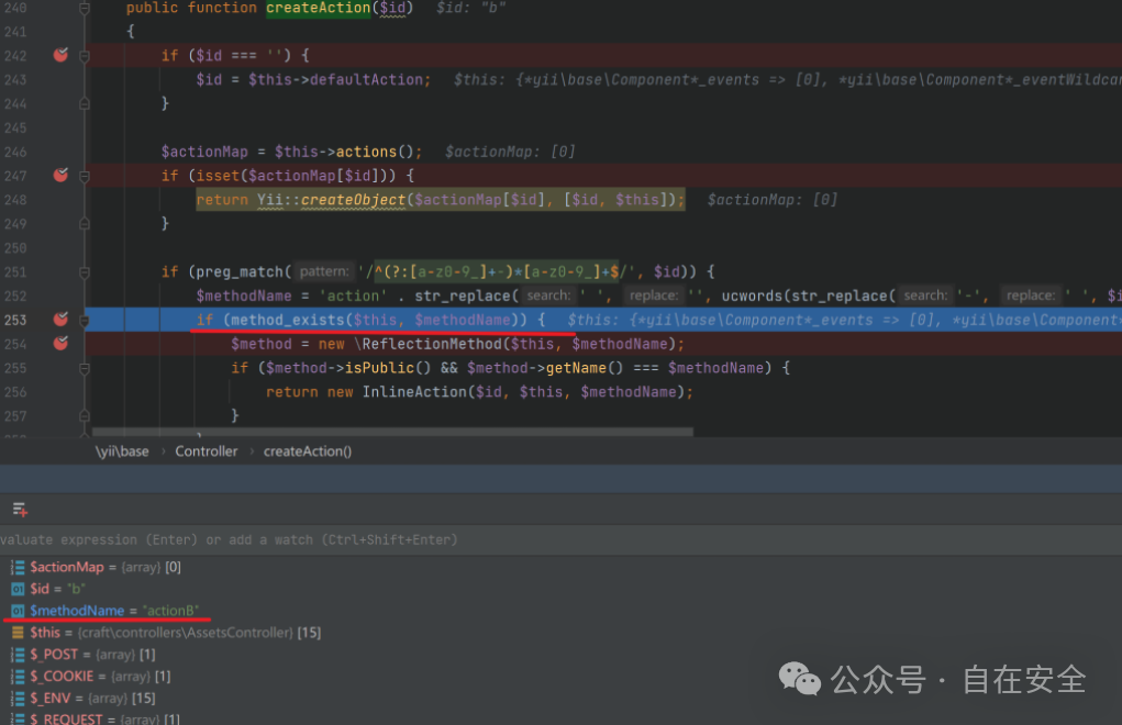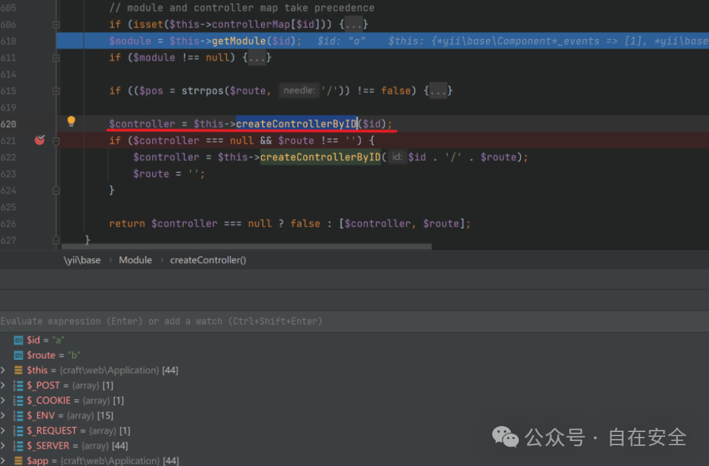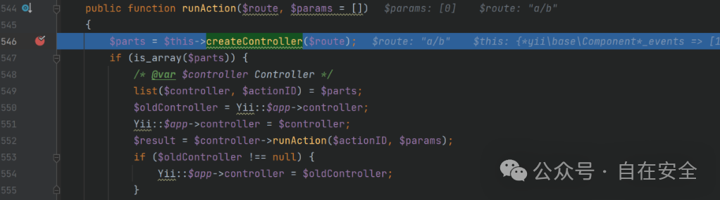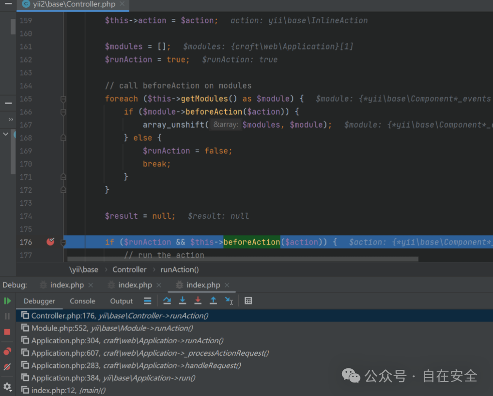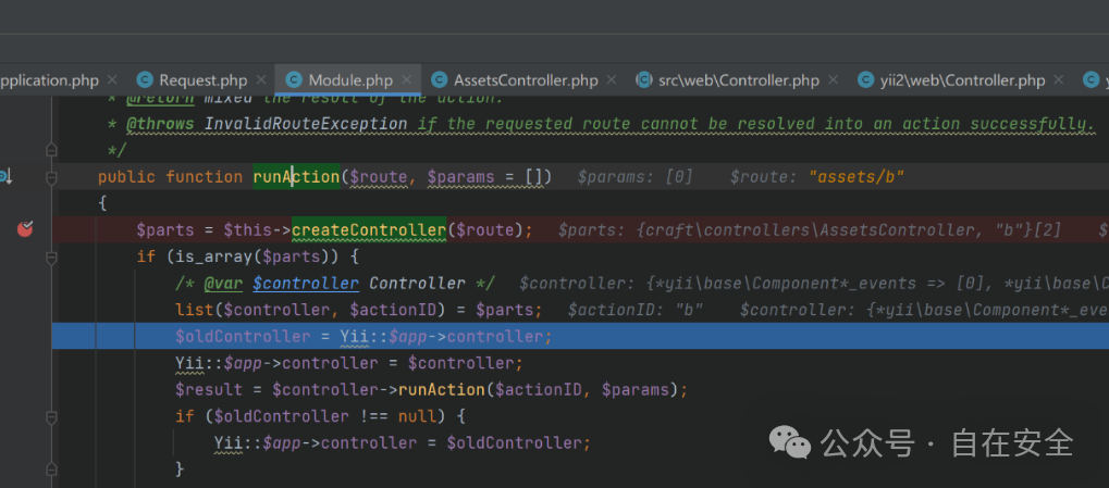 为例重新构造请求进行调试分析,回到\yii\base\Module::runAction