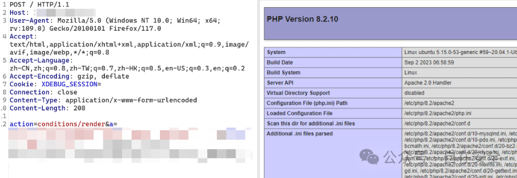 POST / HTTP/1.1Host: User-Agent: Mozilla/5.0 (Windows NT 10.0; Win64; x64; rv:109.0) Gecko/20100101 Firefox/117.0Cookie: XDEBUG_SESSION=PHPSTORMConnection: closeContent-Type: application/x-www-form-urlencodedContent-Length: 31action=assets/generateTransform