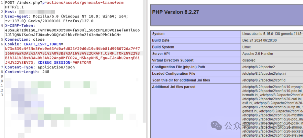 POST / HTTP/1.1Host: User-Agent: Mozilla/5.0 (Windows NT 10.0; Win64; x64; rv:109.0) Gecko/20100101 Firefox/117.0X-CSRF-Token: ***Cookie: CRAFT_CSRF_TOKEN=***;XDEBUG_SESSION=PHPSTORMConnection: closeContent-Type: application/x-www-form-urlencodedContent-Length: 32action=assets/generate-transform&assetId=1&handle=12345