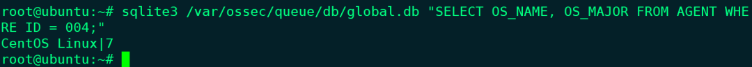 sqlite3 /var/ossec/queue/db/global.db "SELECT OS_NAME, OS_MAJOR FROM AGENT WHERE ID = 004;"