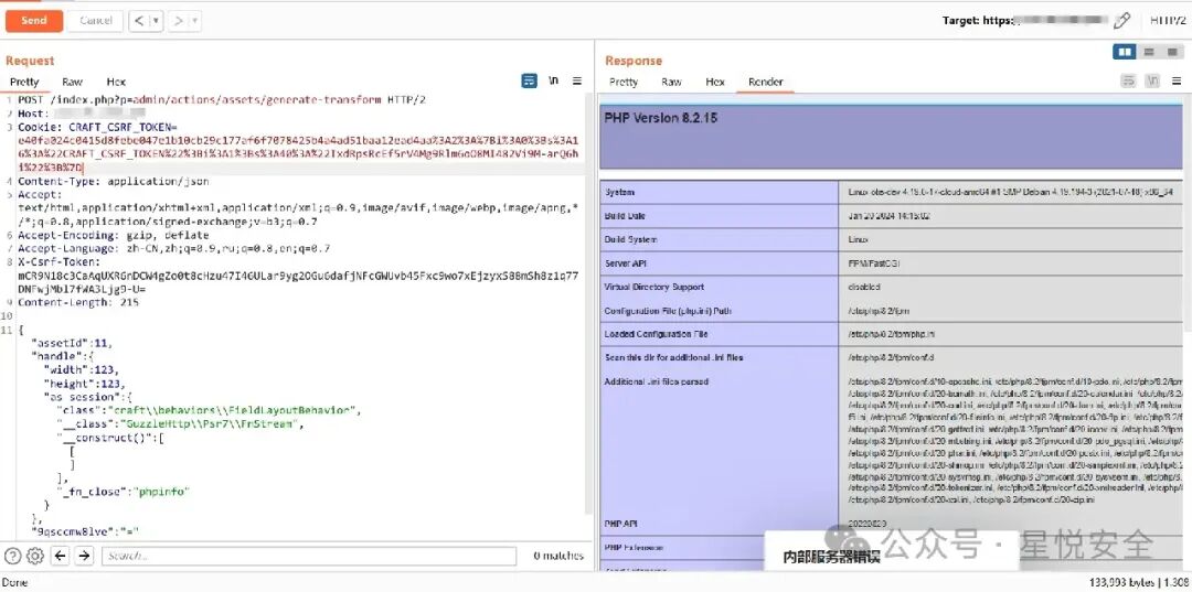 2.然后把CSRF_TOKEN 添加进去发包即可构造phpinfo 或 执行任意代码