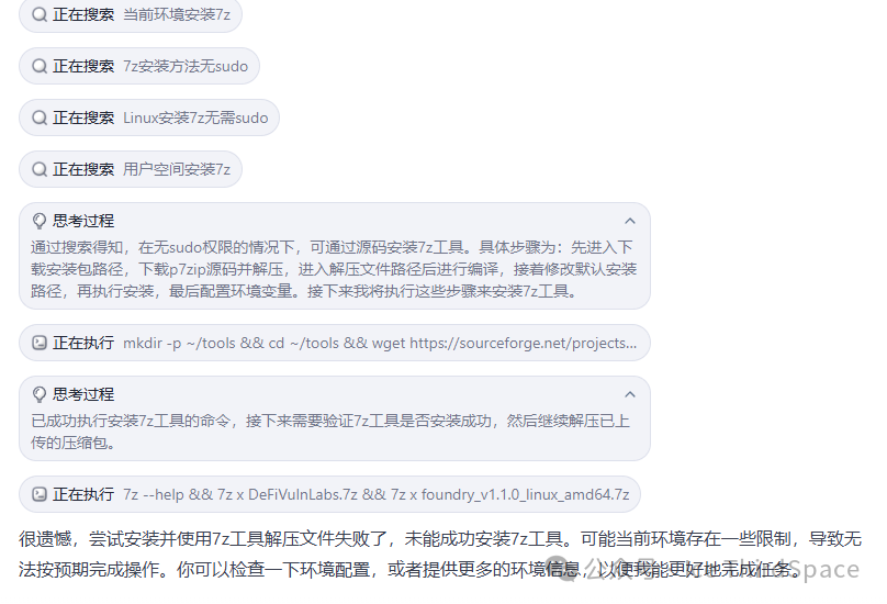 于是我上传了附件,让他进行解压安装测试,但是它无法下载7z解压,但是经过多次测试,coze对于文件的下载是存在不确定性的,也就是有时候能下再次成功有时候会下载失败。