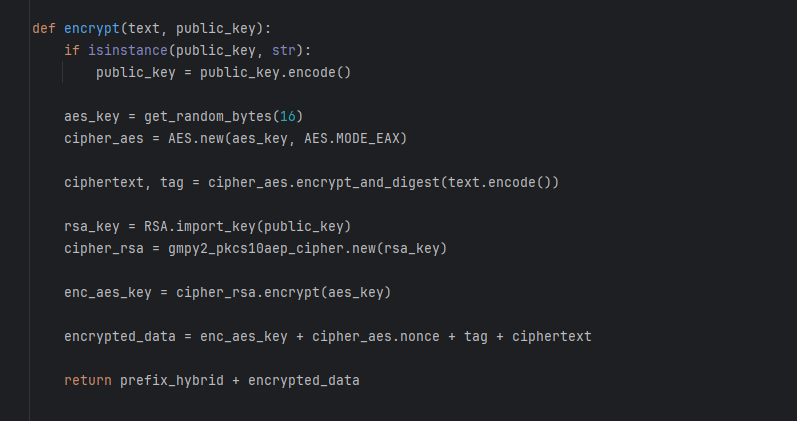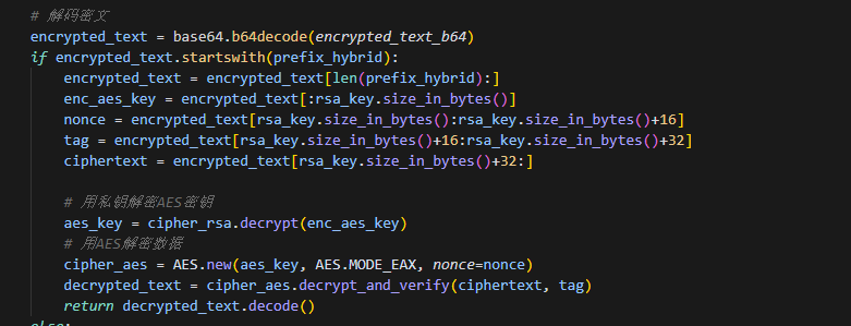 最终密文格式为:HYBRID: 前缀 + 加密后的 AES 密钥 + AES nonce + tag + 密文内容。