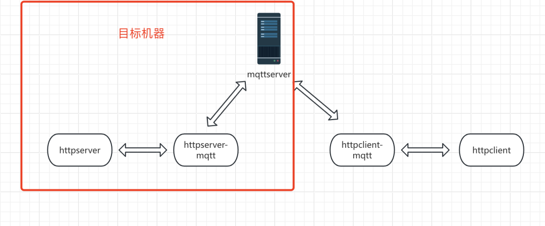 使用mqtt协议特性通过发布主题形式传输数据,达到内网穿透。我这里使用一个http代理去修改,因为http也是一个请求返回一个响应。服务端httpserver->httpserver-mqtt,客户端httpclient->httpclient-mqtt。流程图